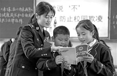 近日,江蘇省海安市公安局城西派出所民警為學(xué)生講解未成年人保護(hù)法。城西派出所開展“法治宣傳進(jìn)校園 普法教育護(hù)成長(zhǎng)”活動(dòng),民警走進(jìn)當(dāng)?shù)馗咝聟^(qū)仁橋小學(xué),引導(dǎo)學(xué)生知法守法,增強(qiáng)自律自護(hù)意識(shí)。周強(qiáng) 攝