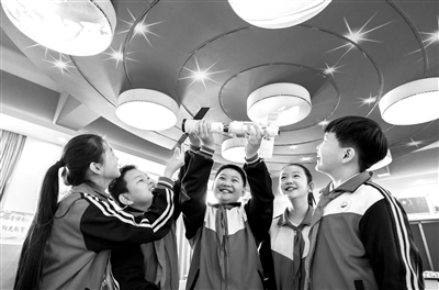 4月11日,內蒙古呼和浩特市玉泉區石東路小學學生在世界航天日主題科普活動中近距離觀看航天器模型。當日,學校開展“仰望星空 逐夢航天”世界航天日主題科普活動,孩子們通過形式多樣的活動,學習航天科技知識、激發科學探索熱情。