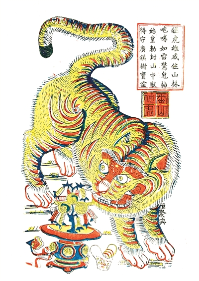 木版年畫的出現(xiàn)與雕版印刷密切相關。我國的雕版印刷興于唐,盛于宋。在宋代,逢到歲時,以木版印刷的神靈祈求平安的習俗已出現(xiàn)。但是,更完備的張貼年畫的風俗真正形成應是明末清初。尤其是“康乾盛世”,使得這五彩繽紛的風習普及九州廣大的鄉(xiāng)野。就其本質而言,木版年畫不是單純的藝術。在民間的生活中,它更是一種風俗的需要,是年俗的方式與載體。