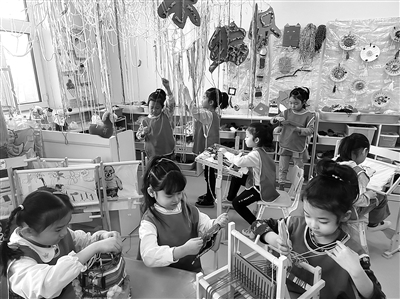 近日,黑龍江省雞西市城子河區(qū)花園幼兒園的孩子們?cè)陂_展編織活動(dòng)。該園將編織課程融入主題活動(dòng)、游戲活動(dòng)、親子活動(dòng)等,構(gòu)建起符合幼兒身心發(fā)展的課程生態(tài)。孩子們?cè)诰幙椈顒?dòng)中收獲了樂趣,也培養(yǎng)了觀察力、專注力、想象力。