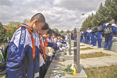 任皓沒有直接回答,反而講了一個故事。那是一次格外艱難的徒步祭奠,天氣惡劣,雨雪交加,跟在隊伍里的任皓看到,因為道路濕滑,一個小姑娘摔了好幾跤,原本干凈的校服上滿是泥濘。“本來她用手撐一下就不會摔了,但我看她的拳頭攥得緊緊的,好像握著什么。”在烈士陵園,任皓的疑惑有了答案——小姑娘攤開手,一朵她親手制作的小白花干凈無瑕地被放在了烈士墓碑前。