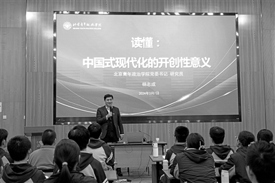 今年3月7日,北青政黨委書記楊志成首次走上八十中講臺,講授“讀懂中國式現代化的開創性意義”一課。