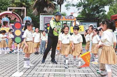 5月21日,在浙江省湖州市吳興區(qū)龍泉街道白魚(yú)潭社區(qū)的“有禮市集”上,交警通過(guò)場(chǎng)景模擬的方式為湖州市第三幼兒園的孩子們普及交通安全知識(shí)。從今年初開(kāi)始,當(dāng)?shù)囟ㄆ谂e辦“有禮市集”,以此提升市民的文明意識(shí),推進(jìn)基層文明建設(shè)。