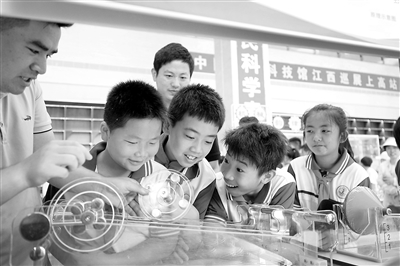 5月24日,中國流動科技館江西巡展(上高站)活動在江西省上高縣圖書館拉開帷幕。該巡展設置了聲光體驗、電磁探秘、機器韻律、人體科學等展區。學生們在互動中學習科學、體驗科學。圖為上高縣錦陽小學的孩子們在展覽中感受科技帶來的樂趣。