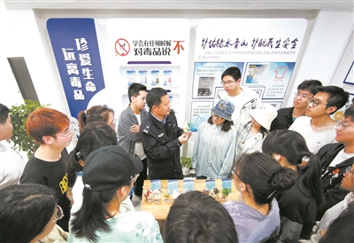 在校園警務(wù)室,學(xué)生辦理戶政、外事等業(yè)務(wù)可以“足不出校”。借助這一平臺,“警察蜀黍課堂”不定時開講,常態(tài)化開展禁毒、反詐宣傳教育。在一站式學(xué)生事務(wù)與發(fā)展中心大廳,學(xué)校提供窗口服務(wù)142項(xiàng)、自助服務(wù)104項(xiàng)、網(wǎng)上服務(wù)81項(xiàng),形成社區(qū)育人的“百米服務(wù)圈”。