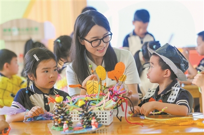 6月3日,在浙江省湖州市德清縣鐘管鎮(zhèn)中心幼兒園,小朋友利用廢舊物品制作手工藝品。當(dāng)日,鐘管鎮(zhèn)垃圾分類辦聯(lián)合鎮(zhèn)中心幼兒園開展“低碳環(huán)保 從小做起”主題活動,通過廢舊物品手工制作等,引導(dǎo)孩子們養(yǎng)成保護(hù)環(huán)境、垃圾分類的好習(xí)慣。王樹成 攝