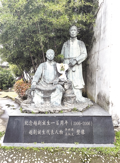 1906年3月27日,嵊州落地唱書藝人李世泉、高炳火等人相聚在東王村香火堂前,把說唱改為演戲,用四只稻桶和門板搭成戲臺,演出大戲《雙金花》。這是一次有準(zhǔn)備、有本子、有把場師傅、有角色、有服裝、有化妝、有伴奏、有人聲伴唱的正式演出,這一天標(biāo)志著越劇的誕生。
