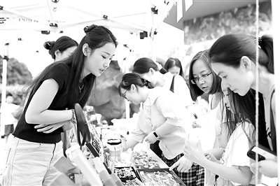 近日,在位于重慶高新區虎溪街道的四川美術學院美術館廣場,“原手藝手工藝術市集”吸引了眾多市民?!霸炙囀止に囆g市集”是四川美術學院設計學院手工藝術系舉辦的學生原創手工藝術作品展示銷售平臺,該平臺用市集的形式檢驗、反哺課堂教學,用市場孵化作品,推動學生創新創業。孫凱芳 攝