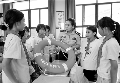 6月13日,在湖南省保靖縣毛溝小學(xué),民警為學(xué)生們講解防溺水知識。天氣逐漸炎熱,保靖縣公安局組織民警深入中小學(xué)校,開展以“珍愛生命 預(yù)防溺水”為主題的安全教育活動,通過向?qū)W生傳授防溺水安全急救技能、實例警示教育、現(xiàn)場模擬急救等方式,提高學(xué)生的安全意識和自救自護(hù)能力。