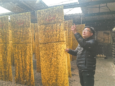 在成蟲繁殖間里,萬“虻”飛舞,楊森一邊詢問工作人員繁殖間的溫度和濕度情況,一邊熟練地拉開箱屜,察看產(chǎn)卵情況,并提醒記者小心別踩到落在地上的蟲子。