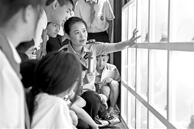 6月21日,在廣西禁毒教育示范基地,公安民警通過(guò)模型教學(xué)生們分辨毒品。