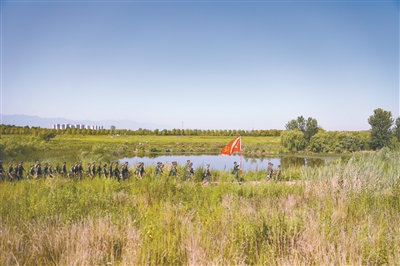 “稍息,立正,向左看齊,向前看!”教官在整頓隊伍紀律后向學生們介紹,“今天的徒步行軍要從梁家橋至詩經里,共計15公里,大家能不能堅持到最后?”“能!”鏗鏘有力的聲音瞬間響徹河畔。