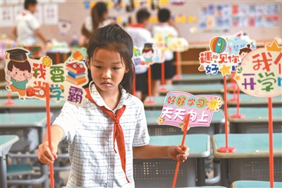 8月27日,浙江省金華市婺城小學學生在布置教室課桌。秋季新學期開學在即,各地做好開學前的準備工作,迎接新學期的到來。新華社發