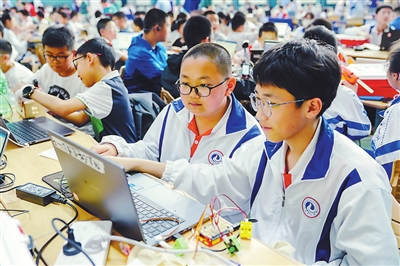 ④長春汽車經濟技術開發區第二實驗學校學生在參加中小學人工智能綜合實踐活動。