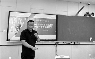 圖:程波在化學(xué)教學(xué)研討會(huì)上分享經(jīng)驗(yàn)。 資料圖片