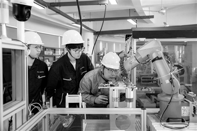 下圖:智能制造學院學生在實訓中心開展技能訓練。學校供圖