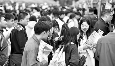 10月19日,在河南高校畢業(yè)生就業(yè)市場豫西分市場暨河南科技大學(xué)2025屆畢業(yè)生秋季雙選會上,大學(xué)生求職者在咨詢相關(guān)崗位信息。