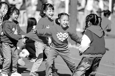 10月29日,在青島市李滄區(qū)虎山路小學(xué),學(xué)生在課間進(jìn)行“老鷹捉小雞”游戲。今年以來,李滄區(qū)在全區(qū)小學(xué)實(shí)行課間10分鐘延長至15分鐘。各學(xué)校根據(jù)實(shí)際情況開展豐富的課間活動(dòng),促進(jìn)學(xué)生健康成長。 張鷹 攝