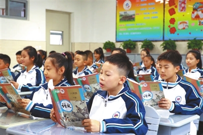 陜西省延安市新區第一中學學生在課堂上朗讀課文《回延安》。本報記者 馮子琪 攝