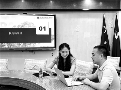 深圳市光明區(qū)教科院設(shè)計教研員和學(xué)校名師團隊協(xié)同培養(yǎng)的模式,圖為東周小學(xué)(集團)校長何維泉(右)在指導(dǎo)新入職的科學(xué)教師陳方結(jié)。 資料圖片