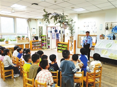 日前,中華女子學院附屬實驗幼兒園大班幼兒開展了“探索北京”課程活動。教師將自己作為課程資源,以親身經歷和感受講述自己和北京的故事,讓幼兒通過教師的視角,看到北京的另一面。圖為曾在北京公交工作29年的保育員鄭老師,穿著制服講述自己與公交車的故事。 本報記者 紀秀君 攝