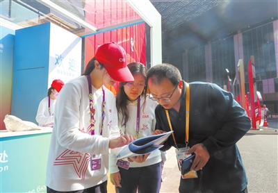 11月5日至10日,第七屆中國國際進(jìn)口博覽會將在上海舉辦。來自上海市40多所學(xué)校的3000多名“小葉子”志愿者,將在現(xiàn)場提供引導(dǎo)咨詢等服務(wù)。圖為11月3日,上海交通大學(xué)醫(yī)學(xué)院志愿者為參展商指引道路。本報記者 張勁松 攝