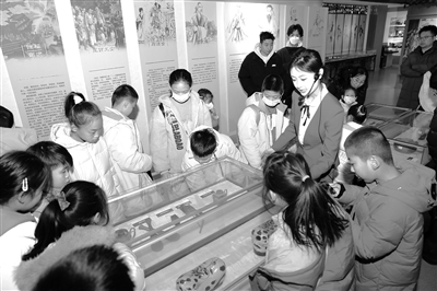 在淄博職業學院博物館,講解員為小學生細致講解。資料圖片