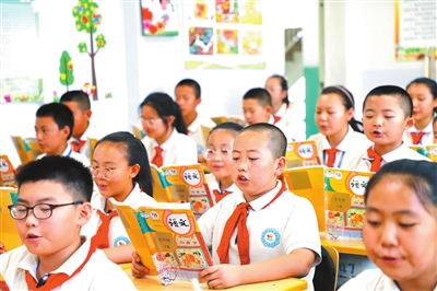敦煌市東街小學學生在課堂上誦讀《涼州詞》。本報記者 尹曉軍 攝