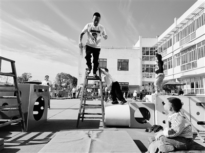 家長體驗幼兒游戲。蔣丹丹 攝