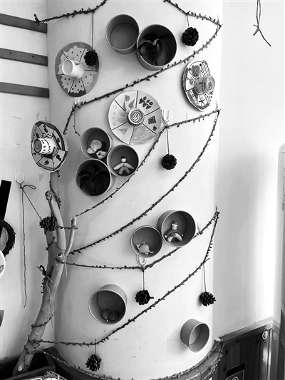 活動過程:根據班級的整體風格、季節特點、幼兒審美和興趣等,我們決定一起打造一片“小森林”,森林里有各種有趣的小動物,大樹上有著獨一無二的樹葉和神秘的樹洞,幼兒可以把自己的喜怒哀樂都分享給樹洞爺爺聽。如果幼兒不想把秘密告訴其他人,可以單獨告訴樹洞爺爺,如果想分享,也可以掛在樹枝上展示。幼兒可以在需要答疑解惑的秘密上做記號,教師會讀取信件并作出回應,幫助幼兒解決難題。我們班的幼兒特別善于發現,也有分享的欲望,我常常看到他們在地上、草叢里發現有趣的東西,并交換小禮物,但是將這些東西存放在哪里成了一個難題。因此,我們在“小森林”里設置了很多開放的樹洞,可以存放對孩子們來說有意義的小物件,這些開放樹洞也像一個展覽廳,讓更多的幼兒一起來欣賞。