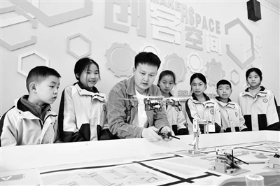 近日,在湖北省襄陽市保康縣黃堡鎮中心學校創客空間教室,教師給學生們講解無人機操控技能。近年來,該校充分利用鄉村少年宮資源優勢,積極推進創客教育,開設創客空間教室,引導孩子們動腦動手,提高學生的創新意識和實踐能力,激發學生的科學興趣,點燃科學夢想,啟發青少年科技創新思維。