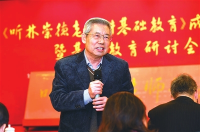 林崇德在《聽林崇德老師講基礎教育》成果發(fā)布會上回答教師提問。學校供圖