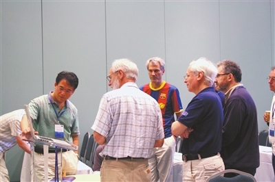 焦念志(左一)與國際海洋學委員會國際工作組的成員們討論問題。 學校供圖