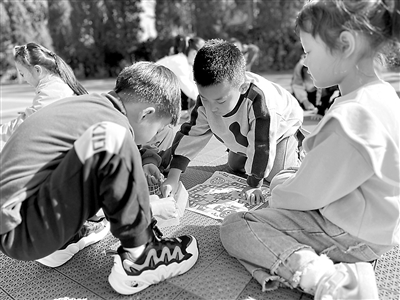 鐵西小學(xué)副校長劉佳婧說:“在體育鍛煉時間達(dá)標(biāo)的基礎(chǔ)上,我們準(zhǔn)備了魔方、七巧板、華容道等益智類游戲,還利用操場空間繪制投擲、跳方格、綜合跳圖案,進(jìn)行課間有序活動。”