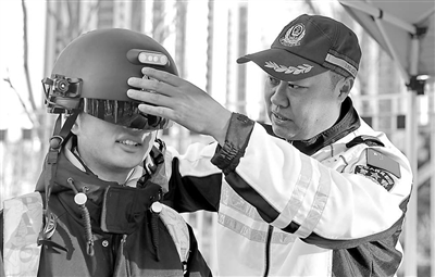 河北省秦皇島市公安局交警支隊民警引導燕山大學學生體驗智能頭盔。在第十三個全國交通安全日來臨之際,該交警支隊聯合燕山大學開展“文明交通 攜手共創”活動。活動組織部分民警走進校園,通過交通安全知識講座、趣味交通安全游戲互動、體驗酒精測試等方式,為大學生普及交通安全相關知識,增強學生的交通安全意識。