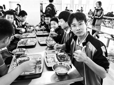 山東省樂陵市實驗中學的學生們在吃午餐。 資料圖片