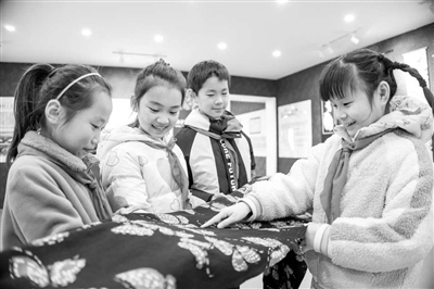 12月12日,江蘇省南通市理治小學的學生們在二甲鎮藍印花布藝術中心參觀。學生們在藍印花布技藝傳承人的指導下,了解和體驗藍印花布的制版、刮漿、染色、刮灰等工藝流程,感受傳統文化的魅力。