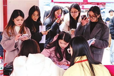 12月23日,在長沙師范學院舉辦的2025屆畢業生冬季招聘會上,一名求職學生(中)填寫個人信息。當日,長沙師范學院舉辦“暖冬送崗,職引未來”2025屆畢業生冬季招聘會。250余家參會主體推出1200多個工作崗位,涉及教育、產品制造、媒體等多個行業。