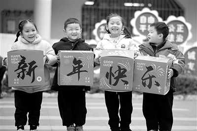 12月26日,在湖南省懷化市通道侗族自治縣幼兒園,孩子們手持“祝福”,奔向2025年。新年臨近,通道侗族自治縣各學校洋溢著節日氛圍,師生開始精心籌備各項新年活動。
