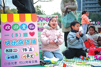1月3日,安徽省蕪湖市繁昌區城關一小師生及家長開展跳蚤市場義賣活動,培養孩子們溝通和交往能力。