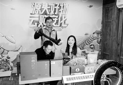 湖南城市學(xué)院駐村工作隊(duì)帶領(lǐng)村民直播帶貨。湖南城市學(xué)院供圖
