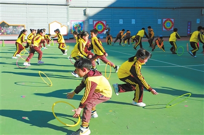 北京市西城區(qū)育翔小學(xué)(陽光校區(qū))學(xué)生課間活動(dòng)。學(xué)校供圖
