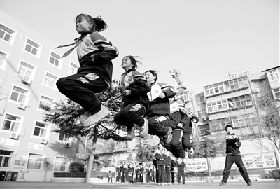 近日,河北省邯鄲市邯山區邯山小學學生在課間玩跳繩游戲。學生在教師的組織下,有序開展轉呼啦圈、跳繩、下圍棋等課間活動,在課間游戲及體育鍛煉中享受樂趣,增強體質,度過輕松快樂的課間時光。