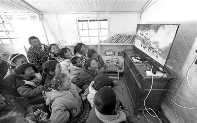 在定日縣長所鄉嘎布村,孩子們在看《西游記》(1月14日攝)。