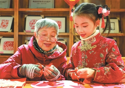 近日,在江西省瑞昌市非遺傳承基地,瑞昌剪紙非遺傳承人在教小朋友創(chuàng)作春節(jié)相關(guān)的剪紙作品,讓孩子體驗春節(jié)民俗文化。 魏東升 攝