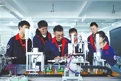 ③云南機(jī)電職業(yè)技術(shù)學(xué)院學(xué)生做機(jī)電一體化項目實訓(xùn)。 云南省教育廳供圖