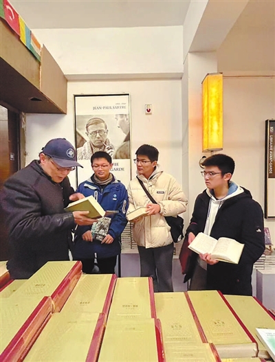 下午一點半許,學生們齊聚在先鋒書店門口。拍完大合照,拿到購書券后,喧鬧的學生一轉身,像一群自由的魚兒,歡戲著遨游在書海之中,他們或聚或散,走走停停,左看看右翻翻,出沒在一個個書架之間,小聲地交流,激起一串串喜悅的浪花。我則在書店里面或坐或行,不時有學生前來請教,我接過他們初選的幾本書,“這本《小詞大雅》是前不久去世的葉嘉瑩老師的作品,談詞的特點和欣賞方法,很值得一讀。”我三言兩語評價哪些書選得好,哪些書還可以再挑一挑,有時還提供一些線索和建議,同一個作者還有哪些好書,同一主題類型還有哪些權威的、有定評的好書。