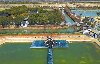 ②學(xué)生們在上海昆秀水產(chǎn)專業(yè)合作社實地學(xué)習(xí)(無人機照片)。