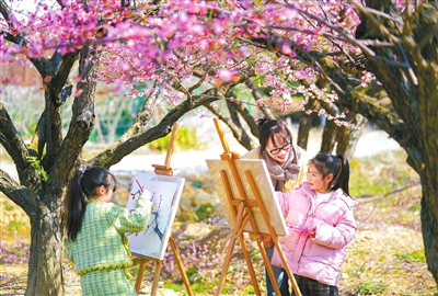 ①近日,浙江省湖州市長興縣龍山街道中心幼兒園師生在梅花園寫生。陳海偉 攝