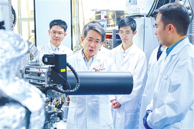 ①薛其坤(中)和團隊成員在實驗室。